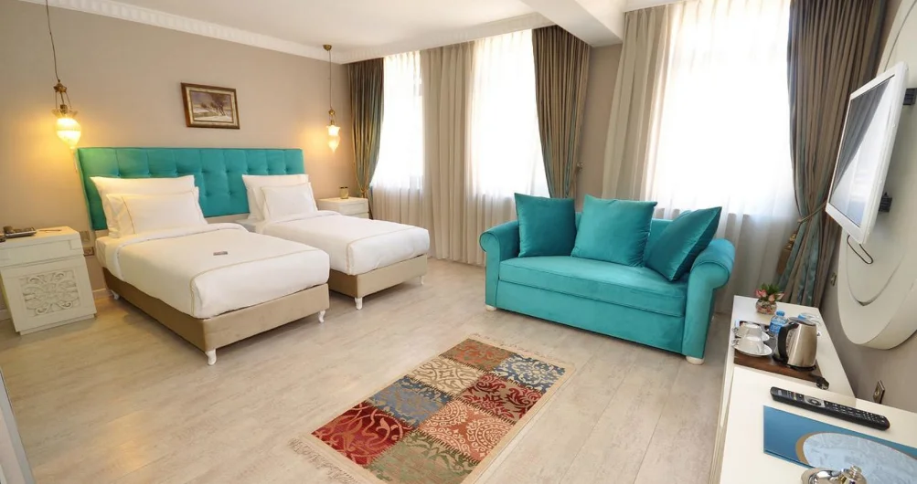 Sirkeci’nin kalbinde yer alan Nea Suites’in her odası, şehrin tarihî dokusunu modern zarafetle buluşturur. Özenle seçilmiş mobilyalar, sade çizgiler ve yumuşak tonlar, konforun en zarif hâlini yaşatır. Geniş yaşam alanı, konforlu yatak, yüksek kaliteli tekstil ürünleri ve gün boyu ferahlık sağlayan doğal ışık, konuklarına ayrıcalıklı bir atmosfer sunar. Sessizliğiyle dinlendirici, şıklığıyla etkileyici olan bu oda; iş veya tatil konaklamalarınızda size kendinizi özel hissettirecek şekilde tasarlandı.
